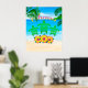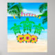 Tres tortugas de mar de honú de la tribu hawaiana sobre flores de hibisco tropicales, excelentes como recuerdo hawaiano o para cualquiera que ame las tortugas.