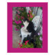 Póster Tuxedo Cat Maroon Dark Pink Cats and Flowers