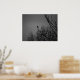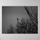 Este poster presenta un pájaro solitario en la rama del árbol contra el horizonte en blanco y negro
