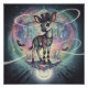 Un caprichoso híbrido cuerno se para en una plataforma flotante de cristal, vestido con un sombrero de tope florido y joyas del cráneo. Detrás, caballos esqueléticos alados se deslizan a través de un cielo cósmico agitado lleno de estrellas, murciélagos y artes flotantes. Un brillante reloj de la cara de la luna desde abajo, agregando travesuras a este paisaje gótico de ensueño de steampunk. Generación de IA