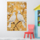 Background: The background features a textured gold-colored wash with decorative gold-leaf style accents on the flowering branches.