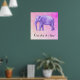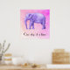 cita de tipografía inspiradora - paso a paso. El fondo es un fondo de color de agua con gradiente rosado de ensueño. La imagen es un elefante de color morado con bonitas flores acuáticas que le dan un toque único y creativo.