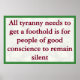All Tyranny Needs To Gain A Foothold Is For People Of Good Conscience To Remain Silent It is NOT a Thomas Jefferson quote, although frequently attributed to him. So who DID say it?dunno, but it works