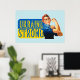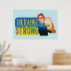 En homenaje a las mujeres de Ucrania, este diseño poster presenta el texto "Ucrania Fuerte" en la bandera ucraniana con la icónica cosecha Rosie the Riveter ilustracion.