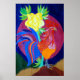 El gallo clásico extravagante y una de las aves más comunes en Umbría, especialmente en el campo de Umbría, donde vive Jean. Multicolorido y decorado con una flor amarilla inventada por Jean y el solárium de fondo habitual. El sol en esta imagen es morado. El gallo, alto y orgullosamente, es de colores vivos, principalmente azules, púrpura y plumas naranjas. Un gallo es también uno de los signos del zodiaco chino.