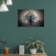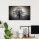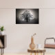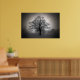 Fotografía en blanco y negro de un árbol rodeado de densa niebla.