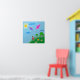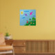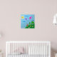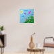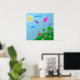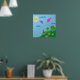 Poster de un dibujo digital de un chica sosteniendo cometas que están volando en el cielo. El dibujo con flores y los árboles en una colina verde, donde está parado el chica con un vestido rojo. El sol brilla en el cielo. Perfecto para chicas.