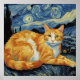 Reservados todos los derechos © Angelandspot un adorable naranja y gato blanco en la famosa pintura de Starry Night