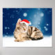 Un gato lindo vestido con Navidades de Santa Sombrero rojo Poster de nieve.