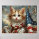 Póster Un gato patriótico lindo envuelto en la bandera de