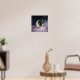 Un lindo gato negro personalizado se sienta alegremente en una luna creciente en un cielo estrellado por la noche. Perfecto para los amantes del gato.
