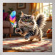 Póster Un gato suave y suave persiguiendo a una pluma