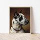 Un gran danés | A Great Dane, de Carl Reichert, es un elegante retrato con vista de perfil de un impresionante baile blanco y negro sobre un fondo moreno. La pintura captura la presencia dominante del perro y su expresión digna, enfatizando su elegante abrigo y su poderosa construcción. El hábil uso de la luz y la textura por parte de Reichert pone de relieve el carácter noble de la raza, creando una imagen atemporal y cautivadora de este majestuoso perro. Utilice las herramientas de diseño para agregar texto personalizado o personalizar la imagen.