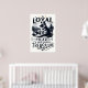 Ilustracion blanco y negro de un perro pastor alemán sentado en un banco de un parque. El perro está mirando hacia el espectador y parece estar relajado y contento. Las palabras A Loyal Heart is Your Greatest Treasure (Un corazón leal es tu gran tesoro) están escritas en negrita y decorativa encima y debajo del perro.