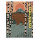 Un gran oso hermoso abrazo el vintage estilo japonés lindo afiche de viaje del oso marrón.