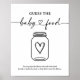 Invite a los clientes de las duchas de bebés a participar en un juego de "Adivinen la Comida del Bebé" con este sencillo y elegante cartel, con un moderno guión con corazón.