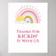 Muestra a tus invitados algo de amor con esta adorable ducha de bebé gracias a un cartel que muestra un arcoiris rosa, luz del sol, nubes y corazones 🌈 ☁️ 💖. El lúgubre mensaje "Gracias por Kickin’ It With Us" (Gracias por Kickin' It With Us) añade un toque divertido y sincero a la decoración de tu fiesta, ¡haciendo que sea perfecto para una celebración para una niña! La envuelve y la coloca cerca de tus favores de fiesta, de la mesa de postres o de la entrada para dejar una impresión duradera llena de dulzura y ✨ de encanto. ¡No te olvides de las duchas de flores de arcoiris o de sol!