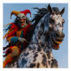 Espeluznante Bromista Sasuy Payaso Montando Poster de Caballos.
