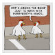 Este divertido diseño poster muestra un pollo explicándole a su amigo de pollos por qué cruza el camino: © 2015 Chuck Ingwersen