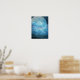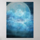 Este hermoso poster representa la luna azul sobre el océano, una neblina azul claro que cuelga sobre el horizonte.