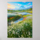 Póster Un prado verde floreciendo en blanco