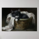 Añade este precioso gatito a tu pared para garantizar una sonrisa cada día. Este cuadro se centra en un gatito blanco y negro adorable instalado sobre una manta blanca en una cesta escondida en un rincón acogedor. Los ojos del gatito son brillantes y curiosos, y parece estar llegando juguetamente a los extremos de la manta. ¡Las cuerdas blancas de los extremos son tan tentadoras! El entorno es poco luminoso, lo que crea una sensación de calidez e intimidad. El cuadro desprende una sensación de confort y tranquilidad, como si el espectador se hubiera topado con un momento de serenidad en la vida de este pequeño y lúdico felino. Los detalles de la pintura se unen para crear una escena encantadora y encantadora que encantará a cualquier amante del gato.