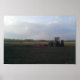 Póster Un Tractor Rojo Que Descansa En Los Campos Abierto