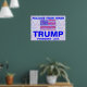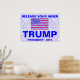 Liberen a su Trump interno con este único poster político. Ofrecido exclusivamente en Zazzle, este diseño de estrellas gigantes con tres líneas de texto azul brillante que se pueden personalizar y una decorativa bandera estadounidense hace de este poster Donald Trump una de las más amables adiciones a tu colección de la temporada electoral de 2016.