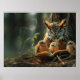 Póster Una lechuza leyendo un libro a pequeñas chicas