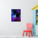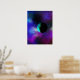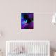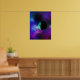 Póster Una luna habitada entre las estrellas moradas verd