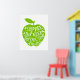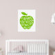 manzana verde con texto "Una manzana al día mantiene al médica alejado", impresión inspiradora, cita, diciendo, ilustracion de arte verbal