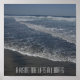 Escena de playa a medida que entra la marea. Olas a lo lejos y un cielo azul en el horizonte.