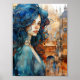 Amnistía Internacional generó a una hermosa mujer con el pelo azul en la ciudad con tintas de alcohol de medios mixtos y estilo de arte acuarela