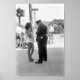 Fotografía en blanco y negro vintage de una mujer con traje de baño que un oficial de policía le dio un boleto.