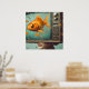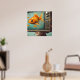 Póster Una mujer pez dorado cabeza de TV Retro todas las