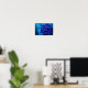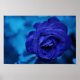 Una rosa azul profunda sobre un fondo brumoso azul más claro.