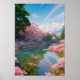 A lo largo del río se despliega una magnífica imagen en la que los cerezos en flor lavan el paisaje con exquisitos colores de color rosa. El río corre tranquilamente, enmarcado por la belleza transitoria de las flores. Un suave olor llena el aire, y los pétalos giran en la brisa, creando una fascinante visión de paz y belleza.