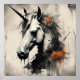 Un unicornio blanco y negro con flores naranjas para Halloween