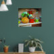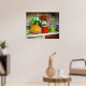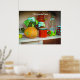 Poster con una foto de la vida en el jardín con una calabaza naranja soleada, una lata de leche y una taza roja. Un encantador acento rústico para su decoración, un gran regalo para los amantes de la comida y la jardinería. Por favor, personalícelo con su texto! Para más modificaciones (estilo de fuente, color de fuente, posición de texto), haga clic en "Editar diseño".