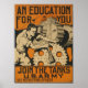 Un poster de reclutamiento de los Cuerpos de Tanques de la Primera Guerra Mundial muestra a un hombre haciendo reparaciones en un tanque.