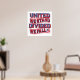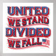 Unidos nos ponemos de pie, dividido nos caemos Poster que ilustra tipografía 3D, estrellas fugaces y temas patrióticos que representan la unidad y la paz de Estados Unidos entre las diferencias en nuestras culturas y visiones políticas. También es un recuerdo de que la única forma en que nos caeremos es desde adentro. Esto puede ser un regalo para cumpleaños, aniversarios o cualquier día para un amigo o familia. Creado con letras y ilustraciones diseñados para aquellos que solo aman los estilos únicos y de Novedad! Diseñado por Katrina Sutton.