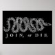 Únete, o muere, el personalizado político de Benjamin Franklin, publicado en su Boletín de Pensilvania el 9 de mayo de 1754. Es la primera representación pictórica conocida de la unión colonial producida por un colonizador británico en Estados Unidos. El original era en realidad un corte de madera que mostraba una serpiente cortada en ocho, con cada segmento etiquetado con la inicial de una colonia o región británica-estadounidense. El personalizado apareció junto con el editorial de Franklin sobre el "estado desunido" de las colonias, y ayudó a exponer su punto sobre la importancia de la unidad colonial. Durante esa época, había la superstición de que una serpiente que había sido cortada en pedazos volvería a la vida si las piezas se juntaban antes de la puesta del sol. En LibertyManiacs.com hemos estado portando nuestra línea de camisetas y productos con la imagen original, pero queríamos modernizarla para hacerlo relevante para los patriotas de hoy. Es por eso que hicimos un completo rediseño del Rattler Oriental de Franklin, lo cortamos en 50 secciones diferentes y etiquetamos cada estado. Ahora - por último - tenemos un diseño reformado para todos ustedes los maniáticos de la libertad que difunden el mensaje de la libertad!