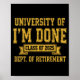 Póster University Of I’m Done Cl Of 2025 Funny Retirement