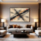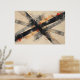 Dynamic abstract art with diagonal black and gray stripes over a cream background. Vibrant touches of orange and red plus ink splatters create movement and energy. Ideal for decorating modern spaces seeking boldness, artistic expression, and an urban, contemporary look.
