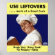 Este poster vintage de la Segunda Guerra Mundial cuenta con un cocinero del ejército leyendo una copia del manual "The Army Cook". Se lee: "Usa las sobras... marca de un buen cocinero, estudia tu "Cocina del Ejército" para recetas - ideas". Celebre la historia de la Segunda Guerra Mundial con este poster de guerra vintage de The War Is Hell Store, restaurado digitalmente. ¿Quieres más productos militares y de historia? Desproteger