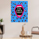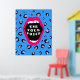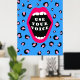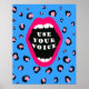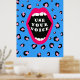 ¡Usa tu voz! Habla alto, incluso si tu voz se sacude. El fondo de la impresión de leopardo en azul y rosa muestra una vibrante boca de gritos rosa.