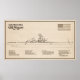 Planes de barco USS Missouri bb-63. Icónica Batalla de la Marina de los Estados Unidos en la Segunda Guerra Mundial