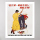 Viejo poster patriótico de la Segunda Guerra Mundial, economía de frente motivadora para el esfuerzo de guerra en un ilustracion humorístico, 1943.