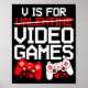 Póster V Is For Video Games Funny Valentines Gamer Love