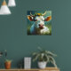 Póster Vaca blanca dulce de aluminio con cuernos y flores